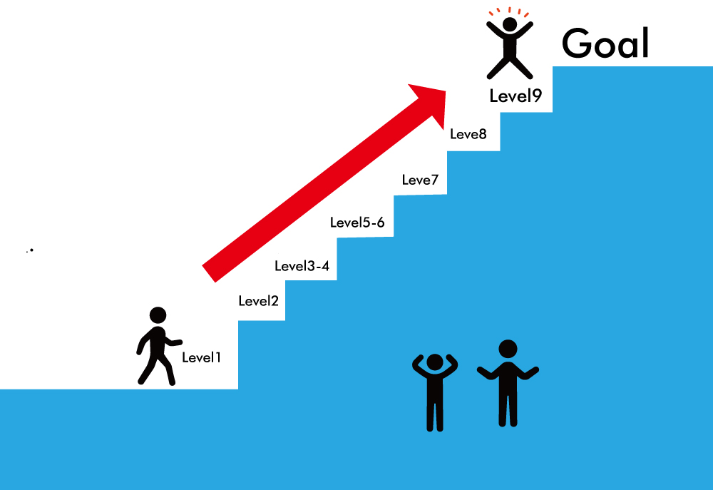 最初は1日1冊から毎日10分の練習からスタートして最終てきには毎日30分以上の多読習慣をつけます。同じ本を複数回読んでも1冊としてカウントし、システムやレベルを上げる前にはレベル確認のテストがあり、合格すれば次のレベルに進むことができます。レベルが上がるごとのご褒美プレゼントシステムがあり子供たちが英語多読を楽しみながらステップアップしていけるようサポートします。